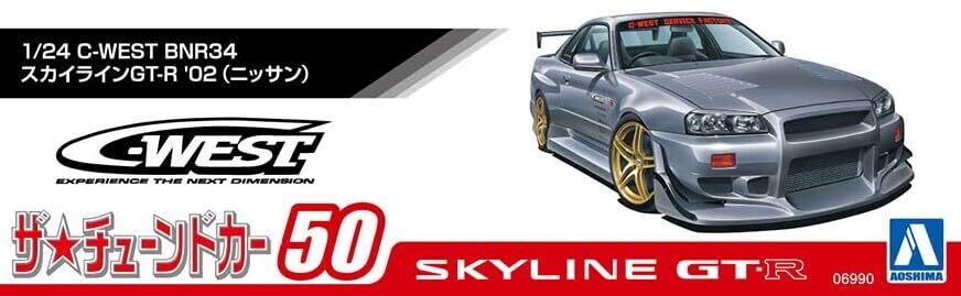 • Aoshima Nissan C-West BNR34 Skyline Gt-R ’02 1:24 Scale Model Kit Display-Ready