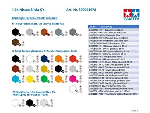 A premium 1:24 scale Nissan Silvia K'S model kit by Tamiya designed for display and hands-on building. It features authentic exterior and interior details, precise lines, and decals for a high-quality finish that suits new and experienced builders.