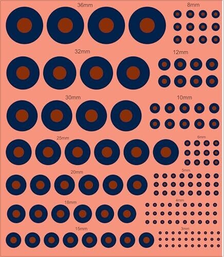 RAF Type B Roundel Decals provide authentic WWII-era markings in a versatile waterslide set. Compatible with multiple scales, they offer easy application, vivid red-white-blue colors, and historically accurate detailing to enhance UK RAF aircraft models.
