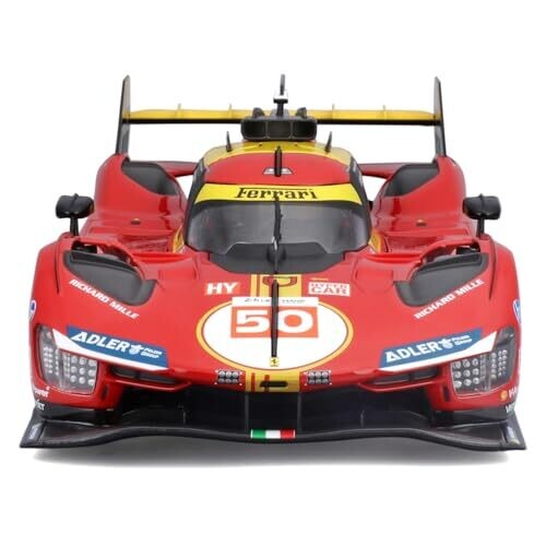 Official 1:18 scale diecast replica of the Ferrari 499P LMH winner with detailed paint, opening doors, and working steering. A premium display piece for adult collectors and Ferrari fans celebrating Le Mans victory.