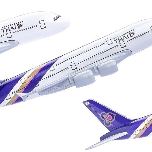 • Bring home a premium 1:400 scale model of a Thai Airways Airbus A380, designed for stunning display on desks, shelves, or mantels.