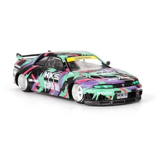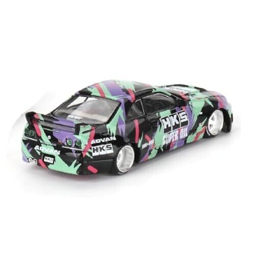 Experience a licensed 1:64 scale diecast from Kaido House designed for Nissan Skyline GT-R (R33) fans. Features a bold multi-color camouflage with HKS Power branding, precise detailing, and a compact 3-inch size ideal for desks and display shelves.
