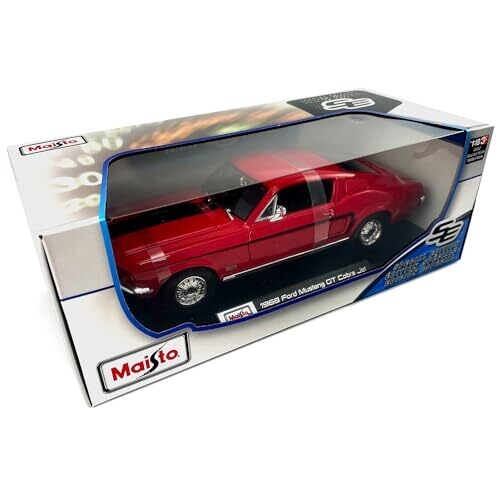 - Officially licensed diecast model capturing the iconic 1968 Mustang GT Cobra Jet in bold red finish.