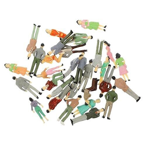 Anneome 30pcs Mini People Figures in 1:50 scale bring scenes to life with multi-color, durable ABS figurines. Random styles add variety for model railways, landscapes, sand tables, and dioramas; easy to place and reposition for immersive layouts.