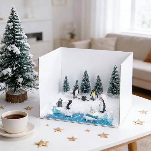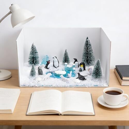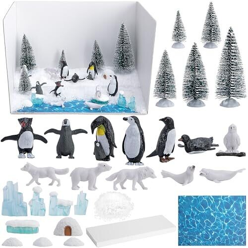 Codree Arctic Animals Habitat Diorama Project Set includes 30pcs of polar bears, penguins, and other Arctic figurines with a diorama box kit. Ideal for DIY crafts, school projects, gifts, and creative display of Arctic wildlife.