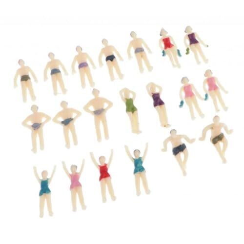 Brand new, high quality 1:75 beach crowd figures for HO/OO layouts. Includes 20 painted figures for immediate setup, ideal for DIY scenery, dioramas, and table-top decorations with multicolor, detailed figures.