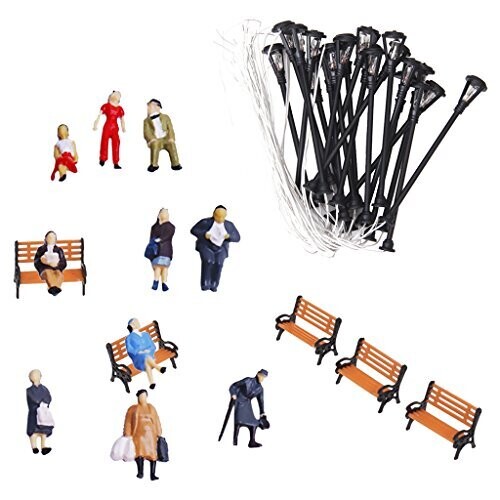• Prettyia HO/OO Scale Colorful Figures, Lamps & Benches Set for Miniature Scenes