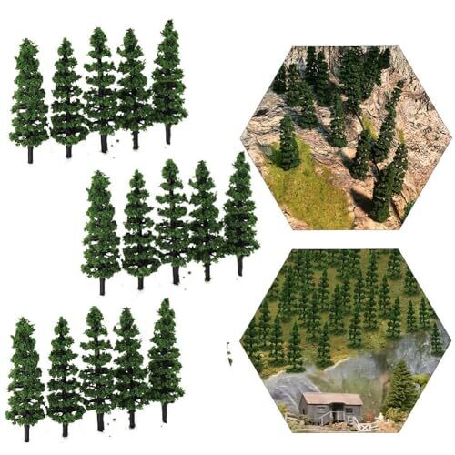 • Includes 50 green model trees at 1:150 scale, ideal for N scale layouts and compatible with most standard model scenery supplies.