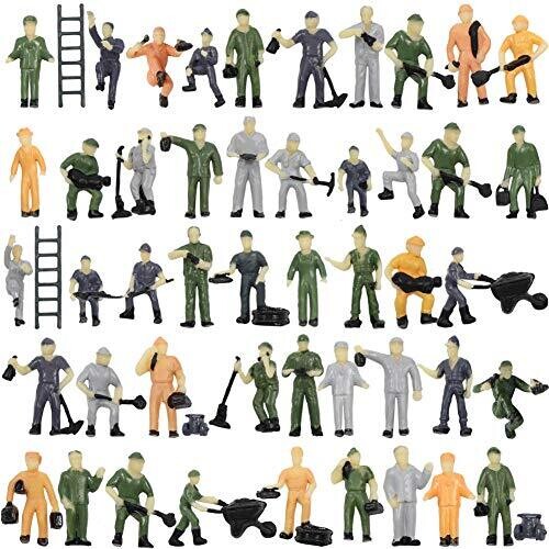 50 vividly painted HO scale railway worker figures, ideal for dynamic dioramas and layouts. Includes 25 distinct poses, ready to place out of the box, durable plastic, sharp detail, perfect for station scenes, maintenance yards, and construction minis.