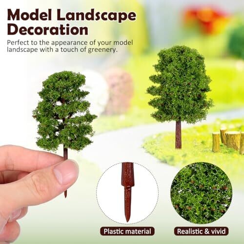 A 20-piece set of realistic green landscape trees for dioramas, architectural models, trains, and crafts. Durable, lightweight plastic with durable color, sized to fit 1:100 scale landscapes and dioramas. Versatile for desks, classrooms, and hobby layouts.