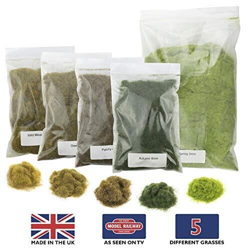 A ready-to-use static grass kit for spring embankments, ideal for model railway dioramas and layouts. Compatible with all gauges, it provides textured turf and trackside scenery to create realistic banked landscapes for rail scenes.