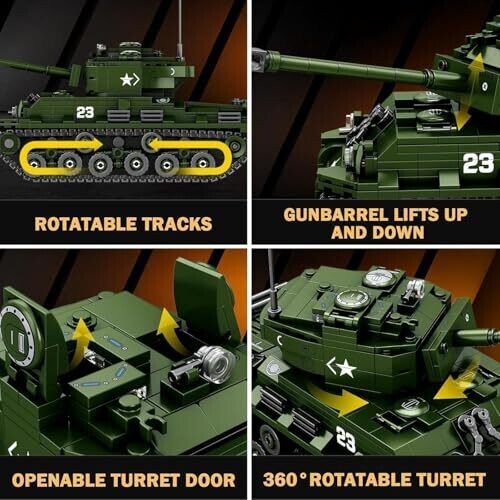 • Immerse yourself in WWII history with a highly detailed 1:30 scale Sherman M4A3E8 tank built from 836 pieces, designed for display and interactive play.