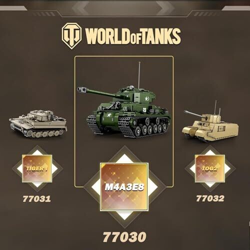 This highly detailed 1:30 scale Sherman M4A3E8 tank kit uses 836 pieces for display and interactive play. Officially licensed by World of Tanks, it offers authentic branding, premium parts, and realistic detailing for collectors and hobbyists.