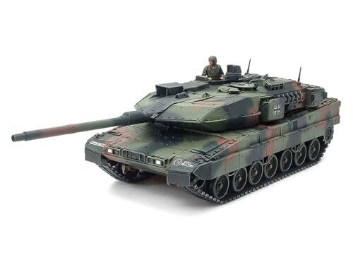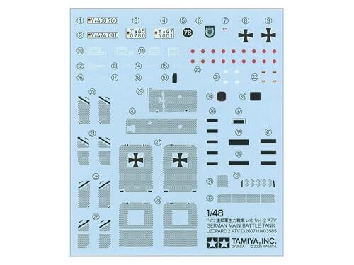 This Tamiya 1:48 scale KPz Leopard 2 A7V plastic model kit lets hobbyists build a detailed military tank with stand. Ideal for crafts and display, includes parts for accurate detailing and realistic final presentation.