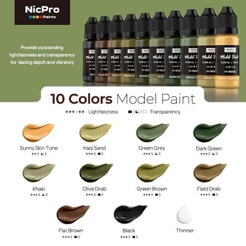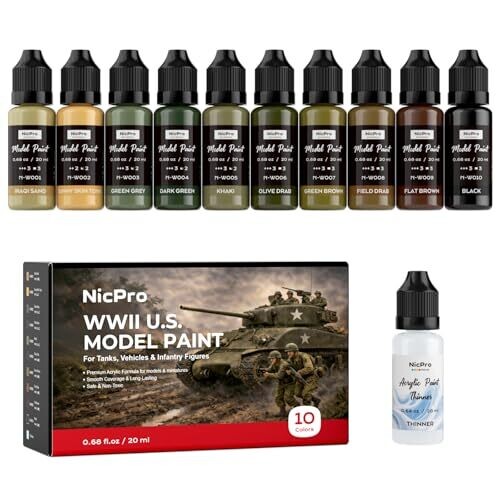 Nicpro WWII U.s. Model Paint Set, 10 Colors – Ready Acrylics for Tanks & Infantry
