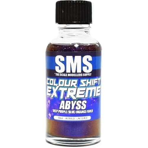 Sms The Scale Modellers Supply Colour Shift Extreme Abyss is a fast-drying acrylic lacquer with a dramatic multi-tone shift. Airbrush-ready for effortless application on sci-fi, fantasy and showpiece models, delivering a vibrant, shimmering finish that shifts with light and angle. 30 ml.