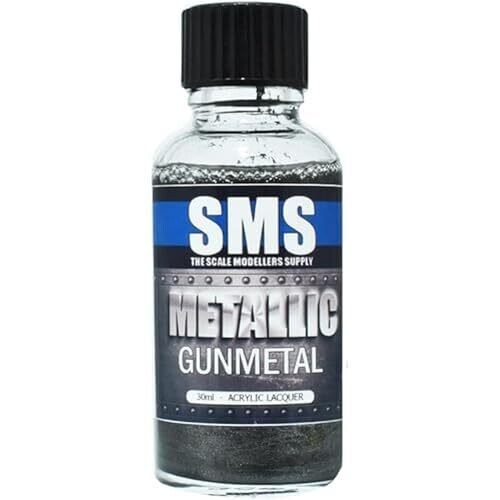 SMS The Scale Modellers Supply Gunmetal 30ml delivers a premium metallic gunmetal finish that sprays airbrush-ready straight from the bottle. It provides vibrant, uniform coverage with fewer coats, dries quickly, and adheres to plastic, metal, and resin for smooth hobby projects.