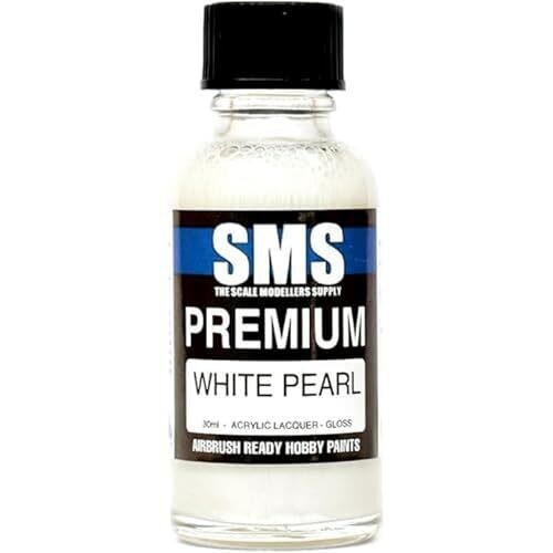 • SMS The Scale Modellers Supply Premium WHITE PEARL 30ml - Airbrush Ready Hobby Paint delivers a premium pearl finish for scale models.
