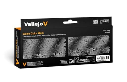 Vallejo Game Color Wash delivers depth and subtle shading to bring model scenes to life. This compact set includes eight versatile washes, easy to use with Vallejo Game Color, perfect for quick, professional-looking finishes on miniatures and dioramas.