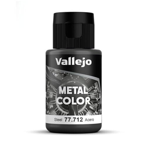 Vallejo Metal Colour Steel is a 32ml bottle designed for metallic miniatures. It delivers a realistic steel finish with smooth coverage, easy thinning, and durable colorfast results, ideal for battle-damaged or modern metal figures.