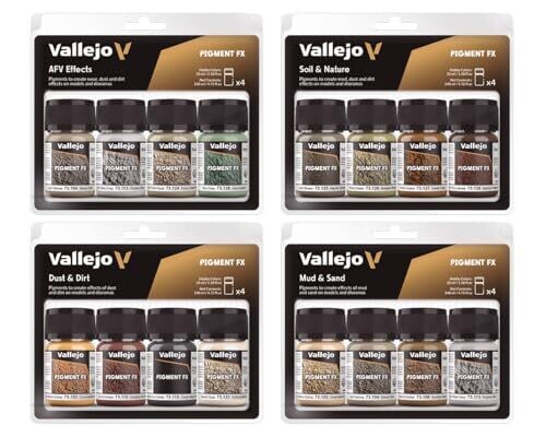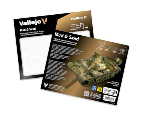Introduce authentic weathering and battle-worn character to your models and dioramas with Vallejo Pigments Mud and Sand Colour. This 4-piece set delivers realism through textured dust, mud, dirt, and aged effects that bring vehicles, armor, fortifications, and structures to life. A practical step-by-step guide by Chema Cabrero helps you master the techniques for convincing mud and sand finishes.