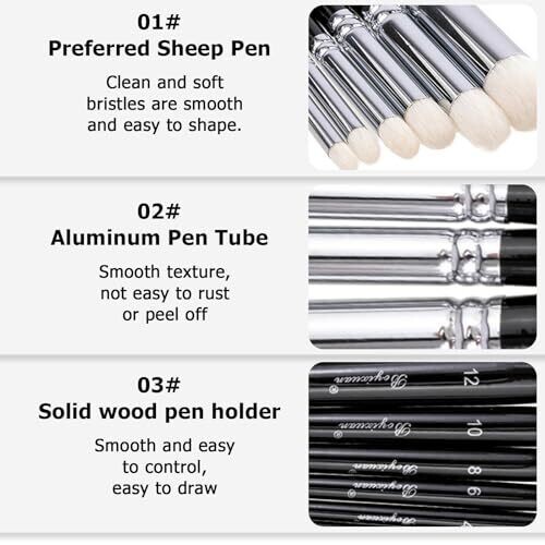• Ergonomically shaped wooden handles offer a comfortable, non-slip grip for extended painting sessions and steady, accurate strokes.