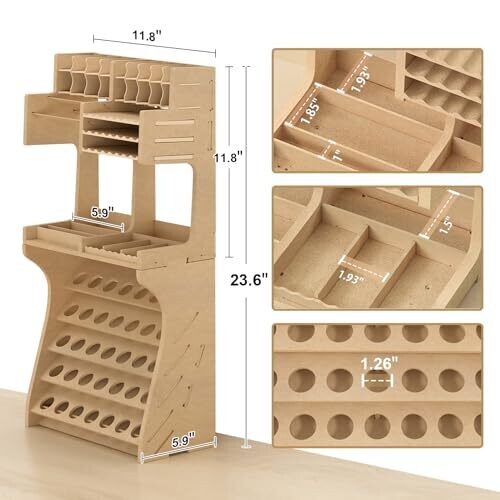 • Supports multiple paint brands and bottle sizes, enabling organized storage of paints in a compact footprint.