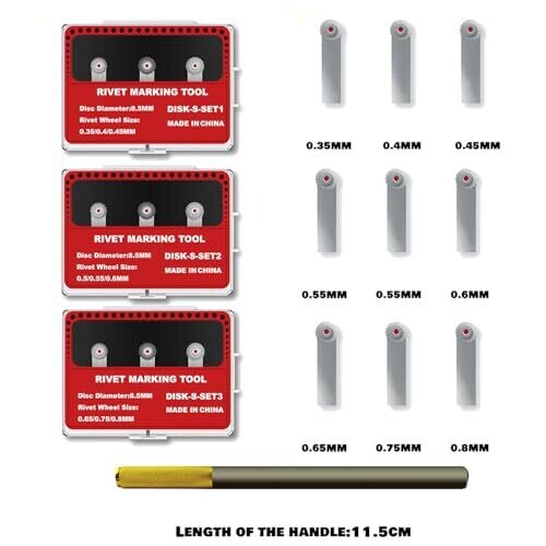 A versatile rivet maker kit from Hubest, featuring three tools and a comfortable handle for precise model assembly. Perfect for hobbyists building scale models, dioramas, and craft projects requiring consistent rivet joints. Includes Set S123 accessories.
