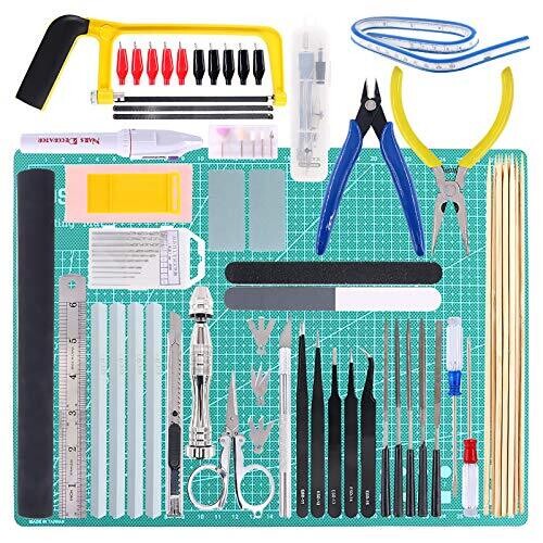 Keadic 87-piece modeler tool set includes essential hand tools, a plastic storage box and a waterproof bag, tailored for Gundam model builds and car kits. Durable, compact and organized, it helps precise cutting, sanding, trimming and assembly.