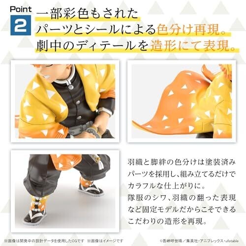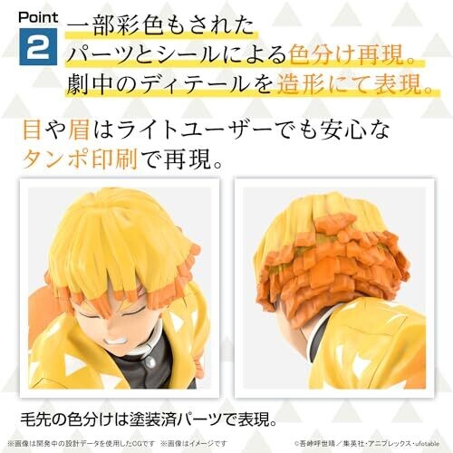 • Reproduces Zenitsu’s eyes, eyebrows, hair color; haori and leg ties pre-painted