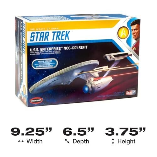 Polar Lights delivers a 1/1000 scale plastic model of the U.S.S. Enterprise refit from The Wrath of Khan. This kit includes detailed parts, authentic registry, and options for display, with build-friendly engineering for Star Trek fans and seasoned hobbyists.
