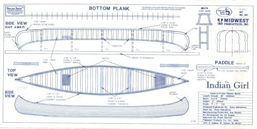Midwest 981 Indian Girl Canoe in 1:12 scale is a big wooden ship model kit for adults. At about 16 inches long, it arrives as a DIY self-assembly woodcraft project with parts and instructions for hobbyists to build by hand.