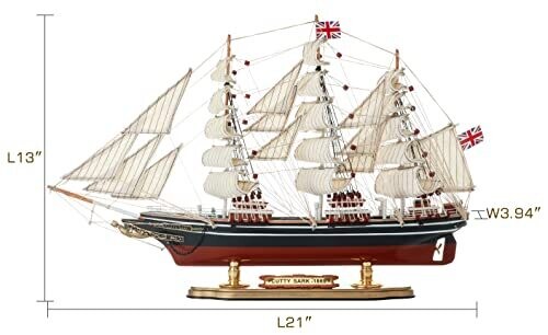• Crafted with a basswood hull and hand-stitched fabric sails rigging for an authentic, premium look.