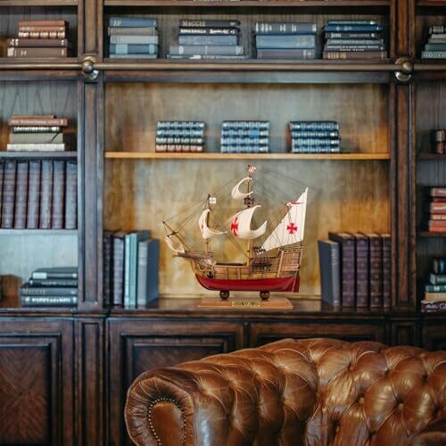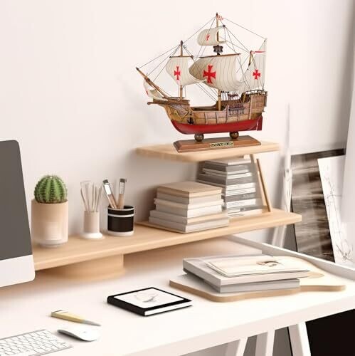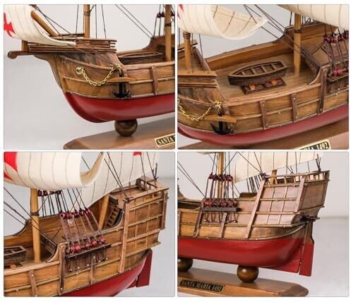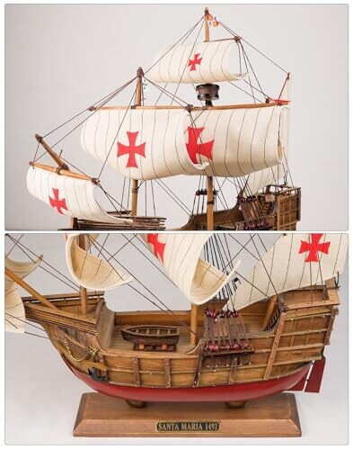 SAILINGSTORY Santa Maria 1/50 scale wooden model ship adds coastal charm to any space. Crafted with a basswood hull and hand-stitched fabric sails, it arrives fully assembled as a ready-to-display centerpiece for homes, offices, or nautical-themed decor.
