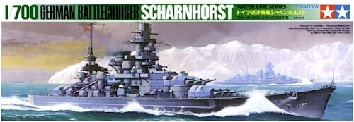 A detailed 1:700 scale model of the German Scharnhorst battleship from Tamiya. Includes engraved deck, photo-etched parts, and precise hull molding for accurate features. Suitable for intermediate builders seeking a high-quality display model.