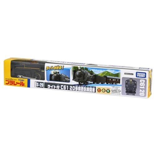 Tomica PraRail S-29 reproduces the C61-20 steam locomotive with a realistic headlight. Officially licensed by JR East, this compact model offers bright, ready-to-run illumination and attractive retro styling for shelves or miniature railway displays, suitable for ages three and up.